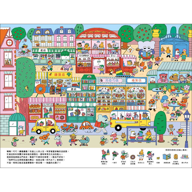小老鼠飛飛和小狗捲捲度過奇妙的一天——從熱鬧的街道、公園、天文館,一路飛向外太空、恐龍世界、童話王國,下一站要去那裡呢?
