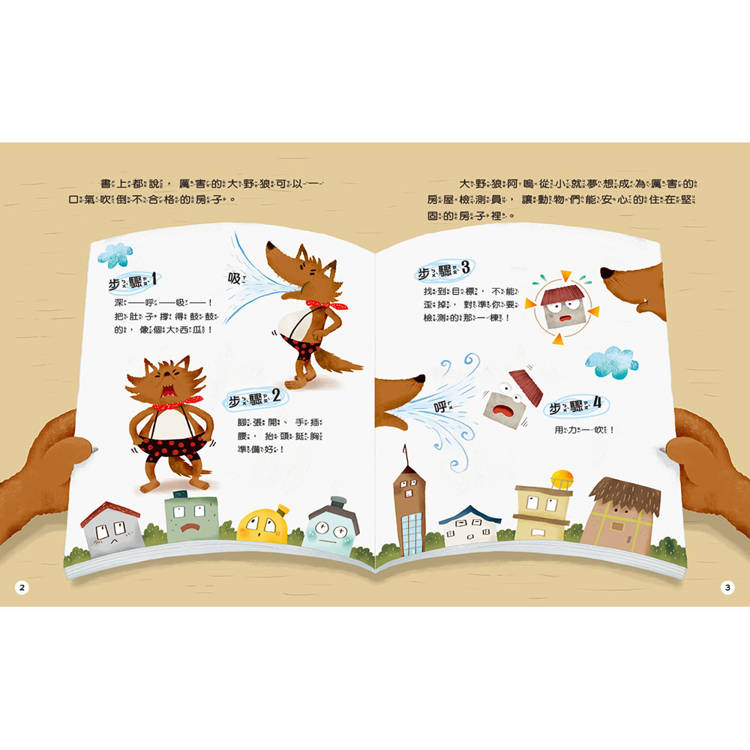 大野狼敖嗚夢想成為房屋檢測員,但他不像書裡其他野狼,能用一口氣就吹倒房子。正當他苦惱時,遇見了空氣小隊,認識了空氣的特性。在空氣隊長的啟發下,敖嗚發明各種檢測工具,不但能測試房屋堅固度,還能用熱氣球搬磚塊,幫豬大哥和豬二哥蓋新屋,甚至協助安裝冷氣。最後,憑著創意和科學,敖嗚成為一位與眾不同的房屋檢測員。