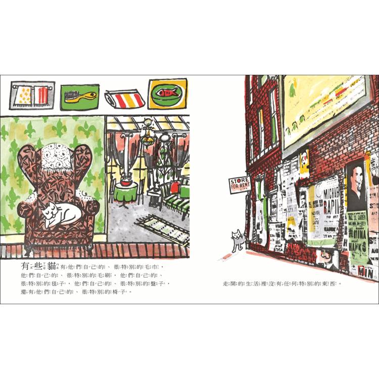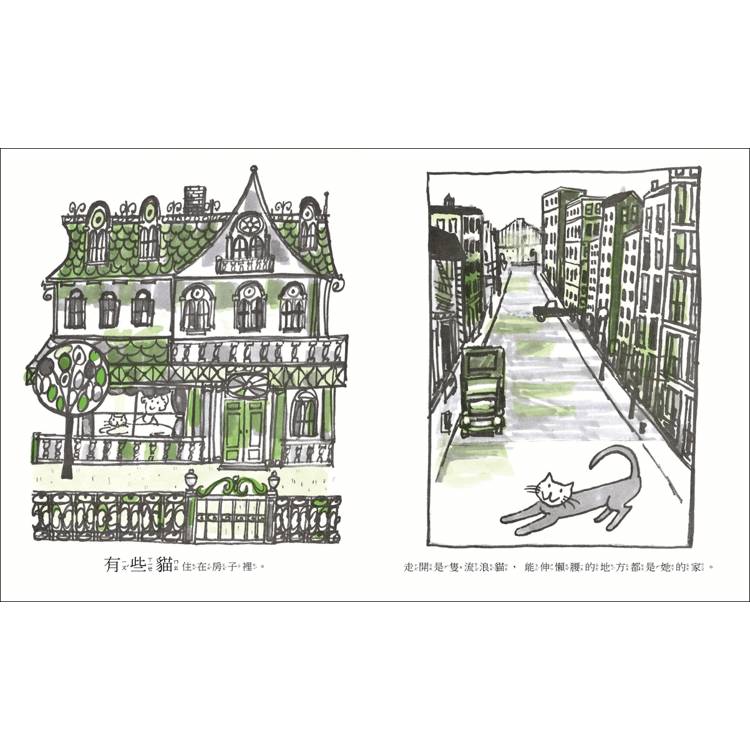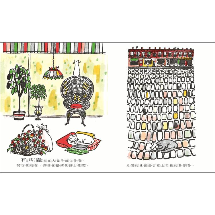 有些貓住在房子裡、坐在大窗子前往外看、聞玫瑰花香,然後在鵝絨枕頭上睡覺,