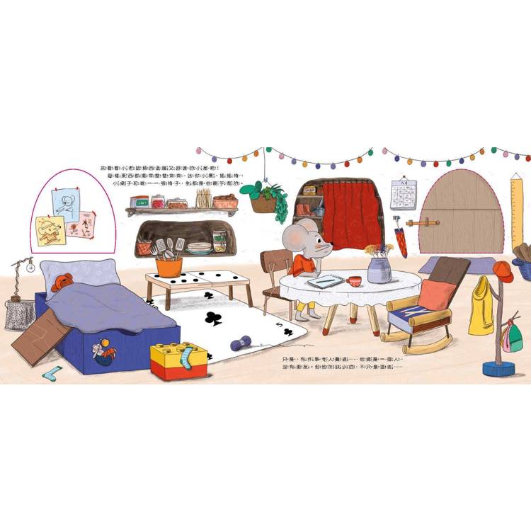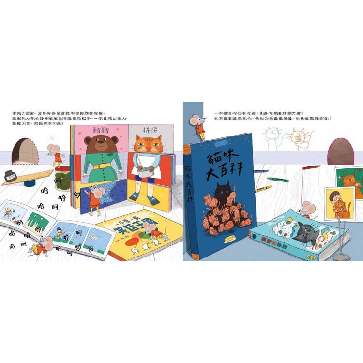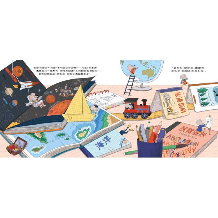 「他們一走,小老鼠蘇西就占據了這個地方,尤其是那些書。很快,他就明白了,這些奇怪的物品會讓他從一個世界走進另一個世界,體驗到各種情緒:歡笑、恐懼、驚訝……直到他對書本們產生了濃厚的興趣。」