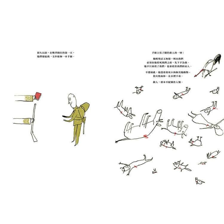 「在當今戰爭不斷的世界中,發人省思的繪本,不管是成人或是兒童,都很適合讀,從人性的角度,重新思考戰爭。」——邱伊翎(國際特赦組織祕書長)
