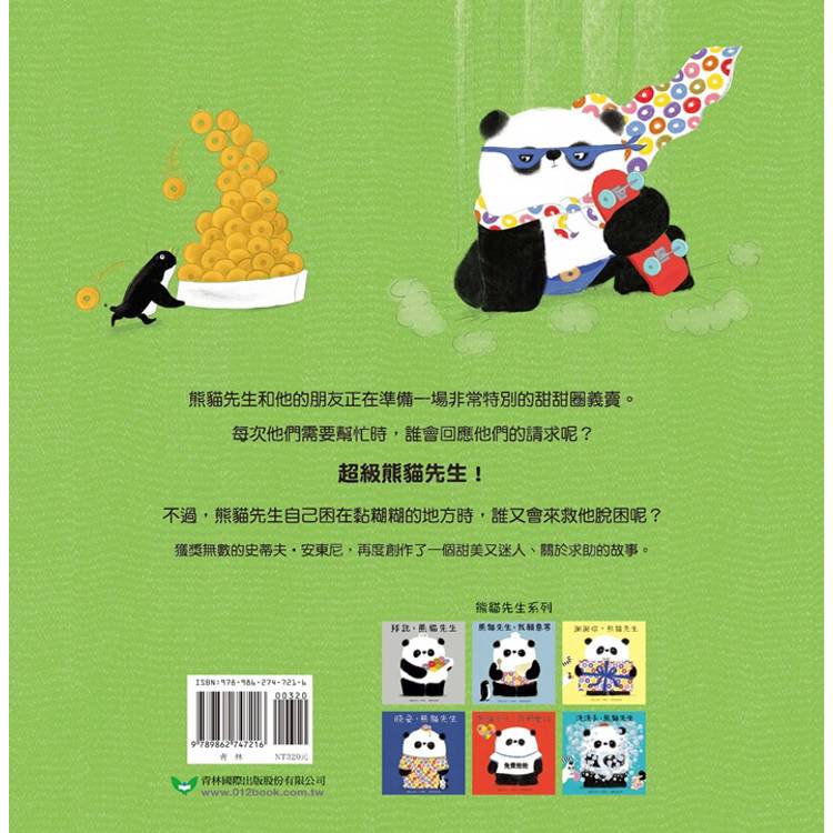 超級熊貓先生超級厲害!不論朋友們遇到什麼樣的困難,只要他出動,所有問題都能巧妙的迎刃而解,還附贈歡樂的驚喜!這一集裡的熊貓先生更會逗得孩子們開懷大笑,而且故事可以躺著看、倒著看,通通都很好玩!書裡出現的角色顏色全都灰灰黑黑白白,他們之間的友情卻色彩繽紛,如同彩虹般明朗又甜蜜。