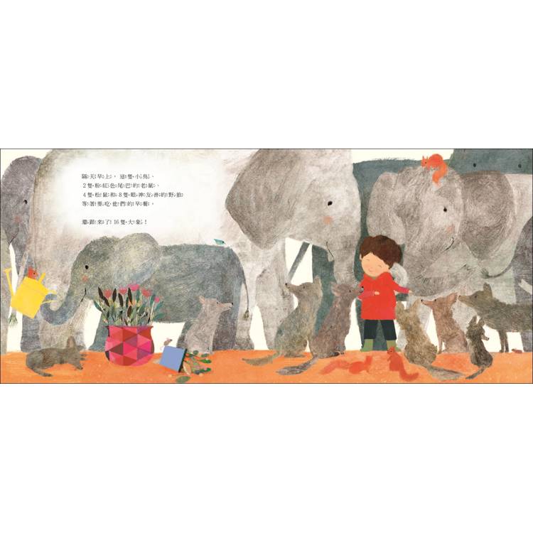 接著是8隻眼神友善的野狼,然後是16隻大象……