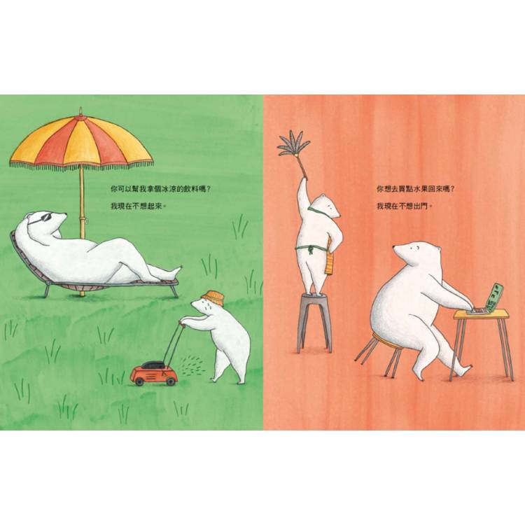 「你可以幫我拿個冰涼的飲料嗎?我現在不想起來。」