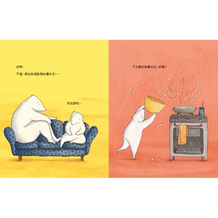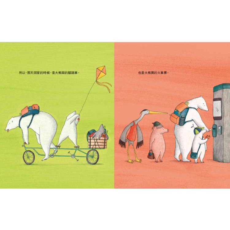 ◆隨著故事情節發展,小熊的自我意識提升以及付諸行動,讓大熊明白生活是需要兩人一起合作的,對於自我認同及建立健康的人際界線有莫大的幫助。