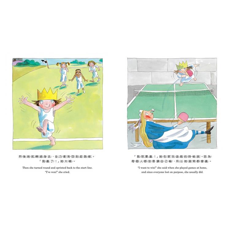 我非常喜歡這本書,因為它帶出了『不一定總能得獎』的概念。書中描述小公主竭盡全力想贏得每件事,但結果發現,無論她多麼努力,總有人比她更擅長一點並贏得勝利!
