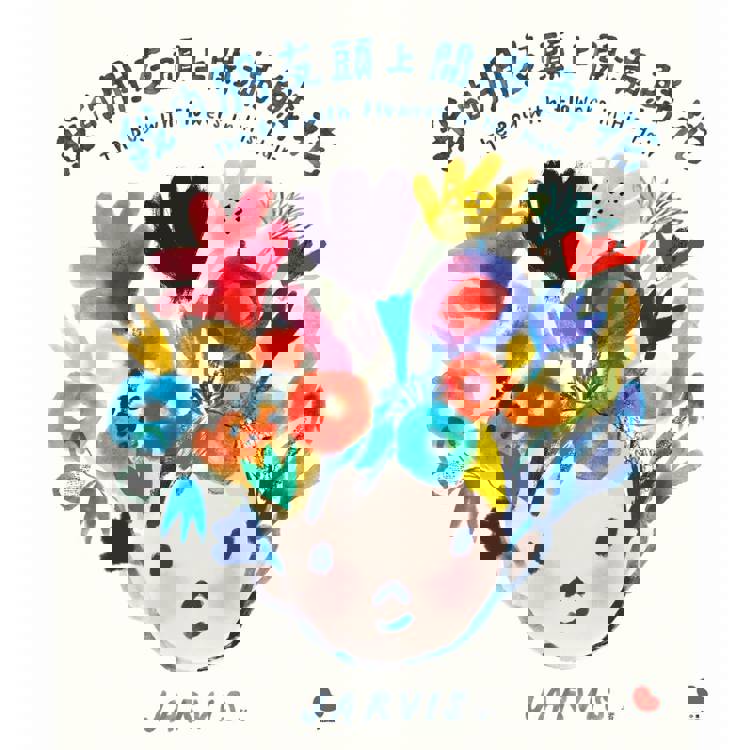 我的朋友大衛,頭上開滿了鮮花。這些五顏六色的花,讓蜜蜂追著他跑,鳥兒也喜歡來停留。大衛溫柔體貼,每個人都好喜歡他,我們總是一起踩水坑、開心玩耍。