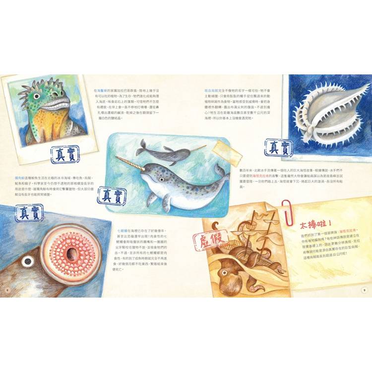 第一次看見這本書時,便立刻被寫實的圖片給吸引了!仔細看看這些生物的特徵、棲息地以及他們相關的故事,這才發現,原來很多你以為「這麼假」的生物特徵,竟然是真的!最有趣的是,從書裡提供的線索,一步步推敲、細細觀察,最後終於找出答案的那一刻,就像完成了一場小小的偵查任務。