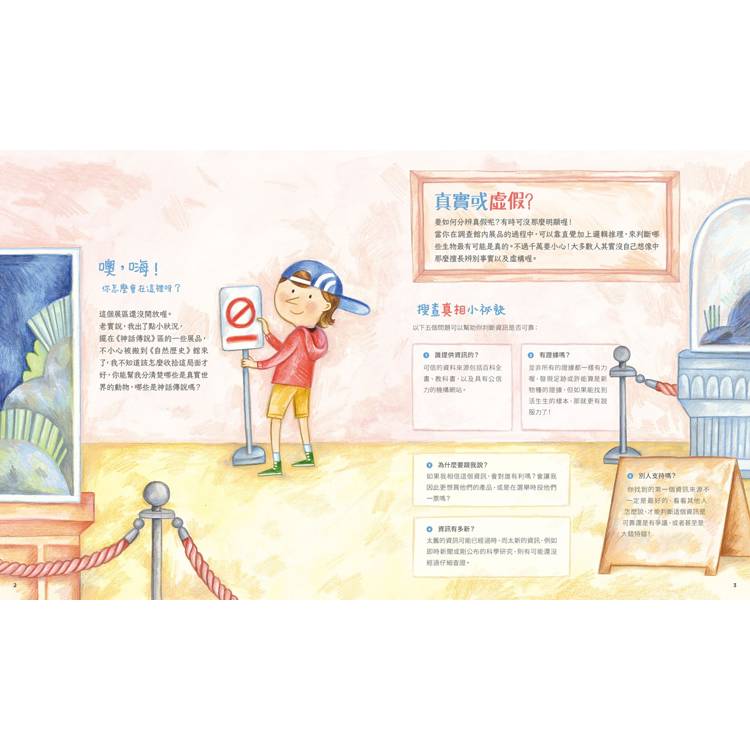 書中的開場語調溫馨且平易近人,由一位虛擬博物館的年輕館長引領讀者——雖然博物館尚未正式開館,但他邀請你協助將一系列生物分類,判斷哪些是真實存在的,哪些又是虛構的。