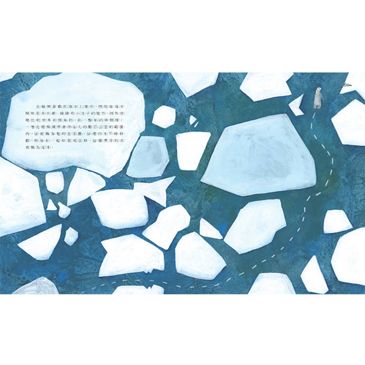 ☆ 珍妮.戴斯蒙繼藍鯨後又一科普力作,這本關於北極熊的圖畫書,充滿北極熊的相關知識,藉由關心北極熊並描繪北極熊的生態,引出現今最急迫的議題──全球暖化,隨著全球氣溫的上升,冬天的時間縮短,北極熊的棲地也隨著變小,甚至連食物也減少了。