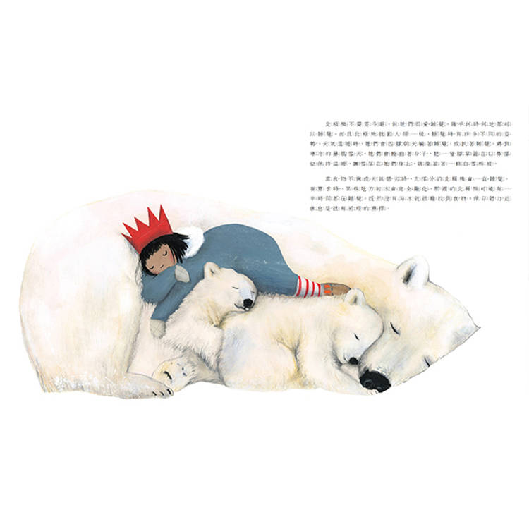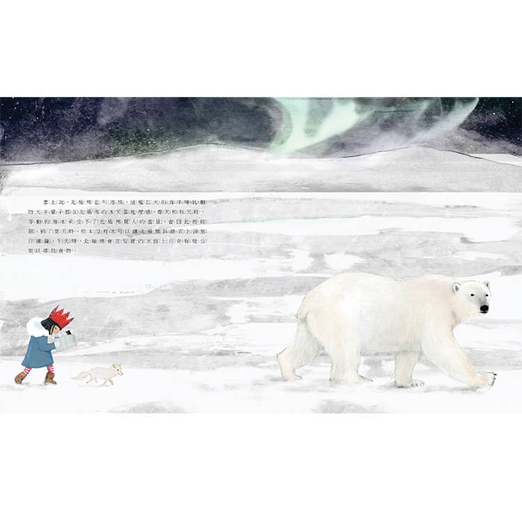 這是一個充滿想像的故事,小女孩將帶領我們進入北極熊的世界裡,了解北極熊的生活以及相關的科普知識。