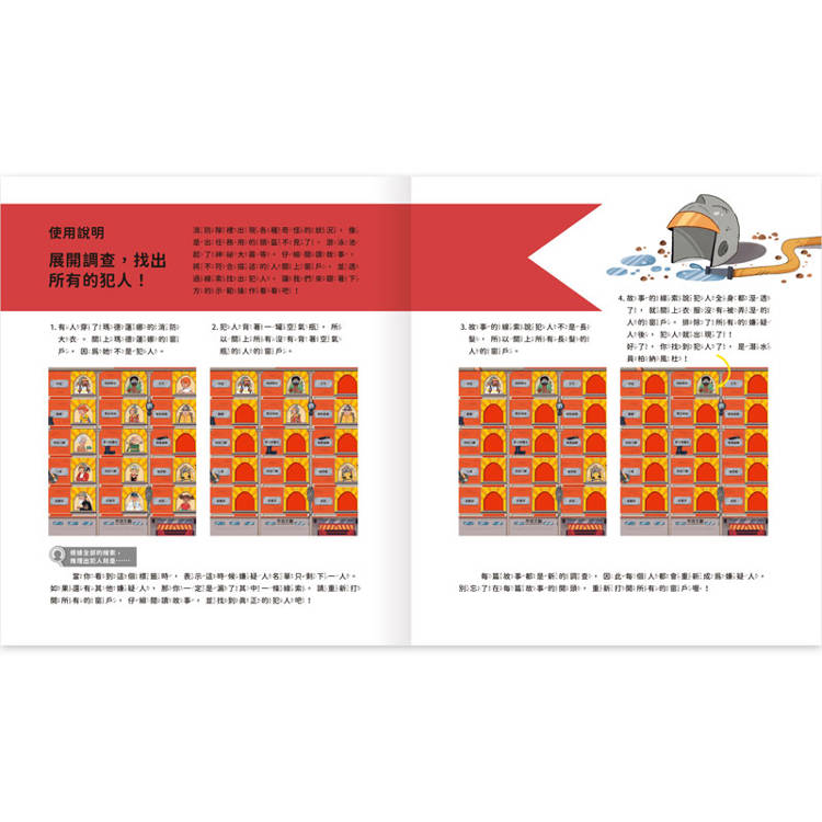 《真相推推推 誰是犯人?》系列巧妙結合了創意互動機關,透過窗戶式設計,小讀者可以在書中親自參與破案過程,他們將化身為小小偵探,透過觀察窗戶中的嫌疑人特徵,並根據書中的線索逐步推理,然後關上窗戶,將嫌疑人一一排除。這種獨特的互動方式,大大提升了閱讀的趣味性!