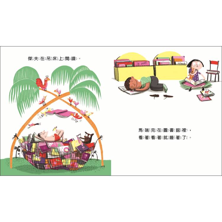 《你在哪裡閱讀?》這本書,透過幽默的視角向孩子展示天馬行空的閱讀場景,也讓孩子可以想一想:自己最喜歡在哪裡閱讀呢?
