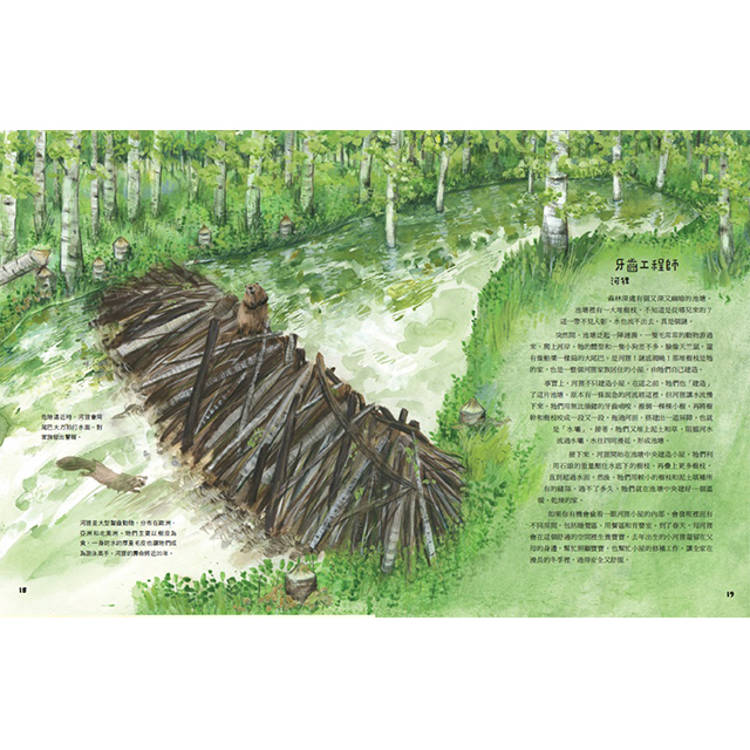 細緻的插畫呈現棲地樣貌,搭配清楚易懂的文字說明,讓孩子能理解動物如何生活,也能建立基礎的生態概念。全書由生態學者林大利審定,內容專業、資訊可靠。
