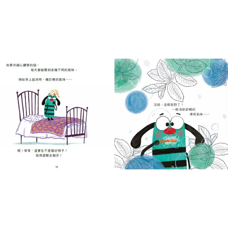 ◆作者以充滿詩意的文字勾勒出日常生活中的各種嗅覺,繪者將這些氣味以充滿童趣的圖像具體化,讓孩子們能用不同視角發現生活中各處味道的存在、激發想像。