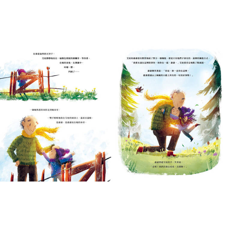 喜歡這本小小的繪本,還有一個很私人的緣由。一年多前,我最最摯愛的父親離開了。在經歷過一段很長時間的痛苦、失眠後,我選擇了走進大自然。因為我住得離陽明山很近,於是,我一有空閒便往山裡去。隨身帶著父親的相片,好似父親陪著我在山裡走。走著走著,眼淚被陽光曬乾了,心裡的悲傷烏雲也被風吹散了,在藍天裡、在樹影裡,我隱約見到父親熟悉的笑臉。我對著父親的照片說:「爸,不管您在哪裡,都希望您很好。我也會好好的……」
