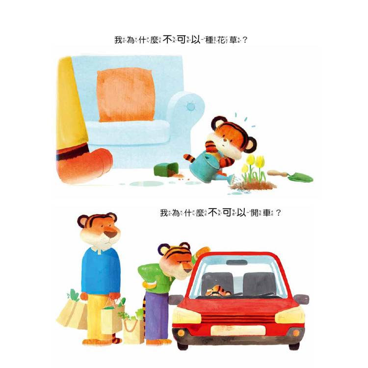 這本有趣的繪本,同時也是一個親子對話的契機。透過小老虎每次的疑問,孩子可學習表達感受,而家長則能溫柔地帶領孩子理解:有些「不可以」,其實是愛與保護的表現。