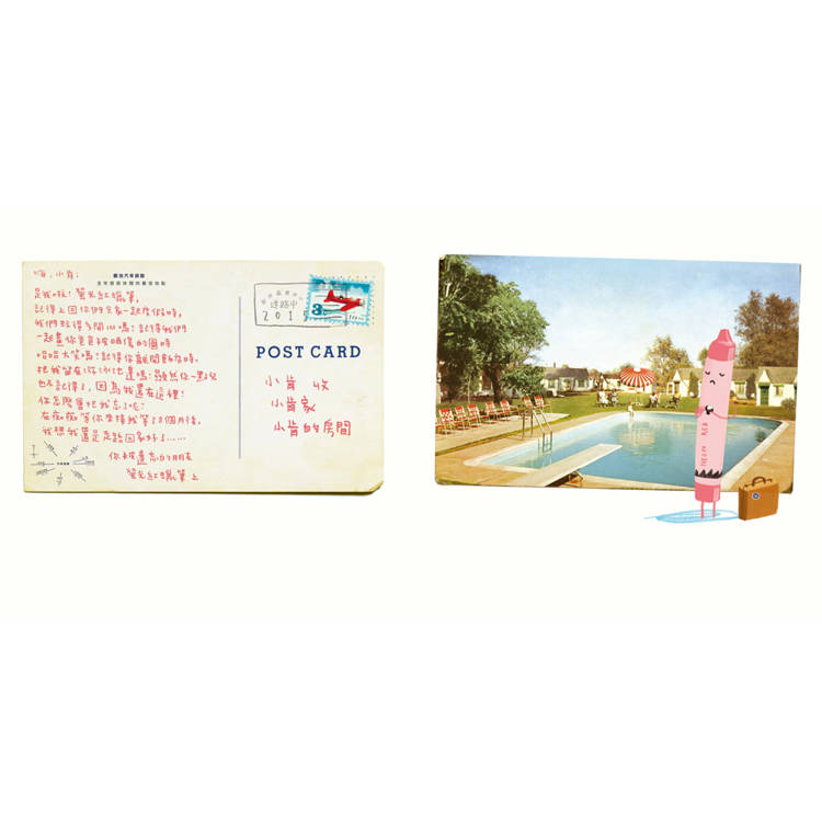 小肯全家度假時被遺忘在飯店游泳池邊的螢光紅蠟筆,在苦苦等候了八個月,決定自己走回家。但從她每到一站,就寄一張明信片回家的內容看來,只能說她的方向感與地理認知十分「獨特」,能否順利到家還真是讓人擔心……