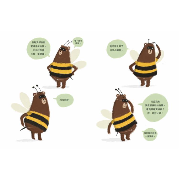 ◆最適合親子共讀的思辨故事! 透過一隻自認為是蜜蜂的熊,這本書以輕鬆有趣的氛圍,引導讀者深入思考:我們該如何從不同角度看待事物? 眼見不一定為憑,耳聞也不一定是正確的。 與孩子一同展開這場關於認知與理解的旅程。