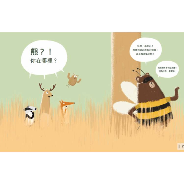 ◆可以提問孩子關於:「熊偽裝成蜜蜂之後,他是熊還是蜜蜂呢?」這類思辨問題能幫助孩子更深入參與故事,提升語言表達能力、邏輯思維及思辨能力。