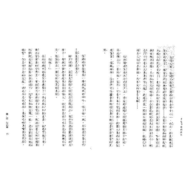 他像往常一樣的敞開車窗,小孩們都衝進車廂裡了,連他的膝蓋上也擠滿了孩子,每個小孩都煞有介事的忙著轉動方向盤。大卡車沿著樓房慢慢靠近。風塵僕僕的大臉逐漸靠近佳姍,直到一股引擎的熱氣撲到她臉上。她一根寒毛也不動。這是他們父女之間的習慣。