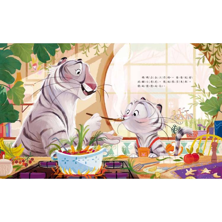 晚上睡覺前,爸爸更輕聲在小老虎耳邊說出另一句話,比「爸爸都在」更神奇的咒語,到底是什麼呢?其實,答案早就在我們心中,那就是……