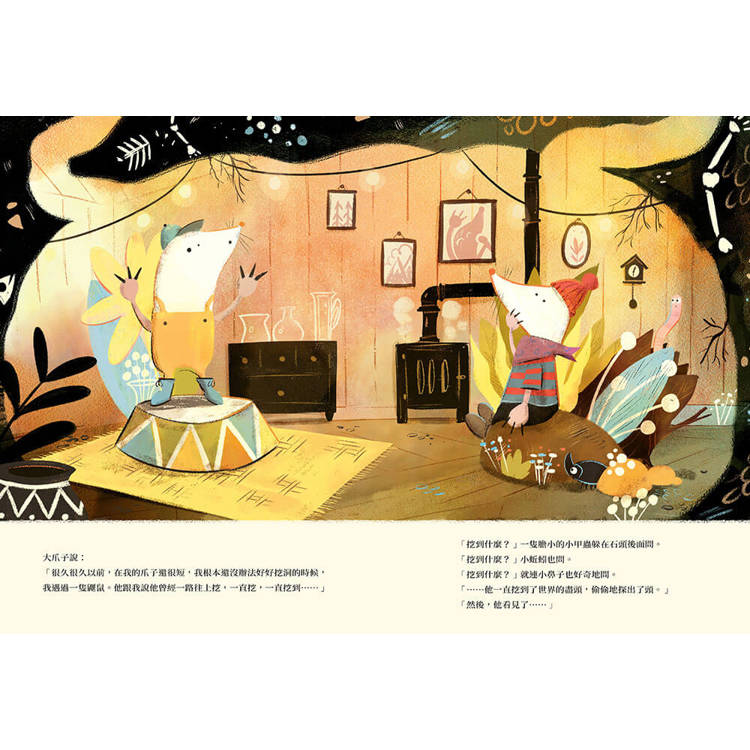 「很久很久以前,在我的爪子還很短,我根本還沒辦法好好挖洞的時候,我遇過一隻鼴鼠。他跟我說他曾經一路往上挖,一直挖,一直挖到……」