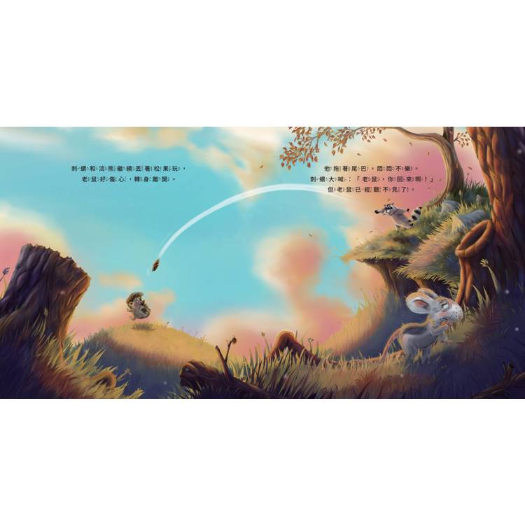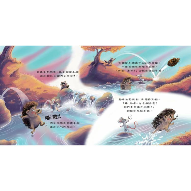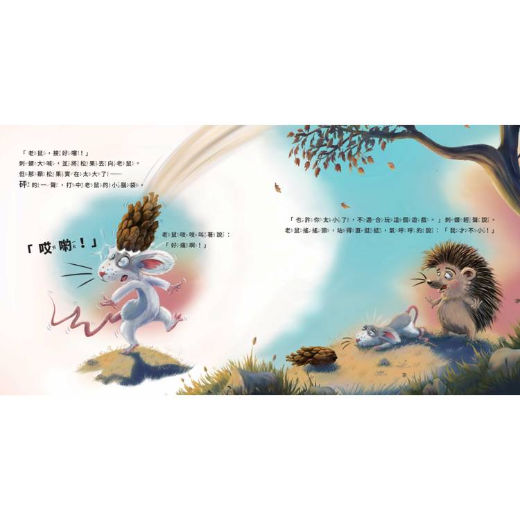 有天,刺蝟想和小老鼠玩松果的傳接球遊戲,