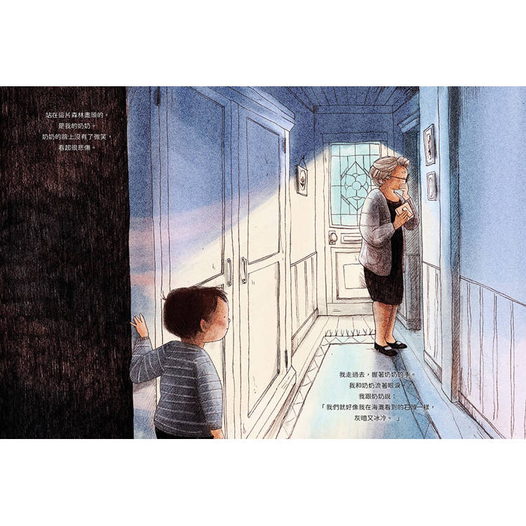 溫暖的畫風和溫馨的故事走向,故事裡的奶奶用一個很具創意的方式,幫助孫子走出喪失親人的悲傷。兼具故事情節與療癒效果的精彩繪本。