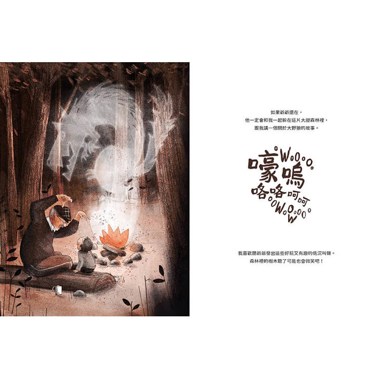 在爺爺的喪禮中,孩子懷念起爺爺,他說如果爺爺在這裡,一定會替他講一個關於大野狼的故事,並且學著野狼的嚎叫聲。在這裡,孩子以回憶和爺爺過往相處的點滴來壓抑悲傷。直到他看到奶奶和他一樣悲傷,這才哭了起來……