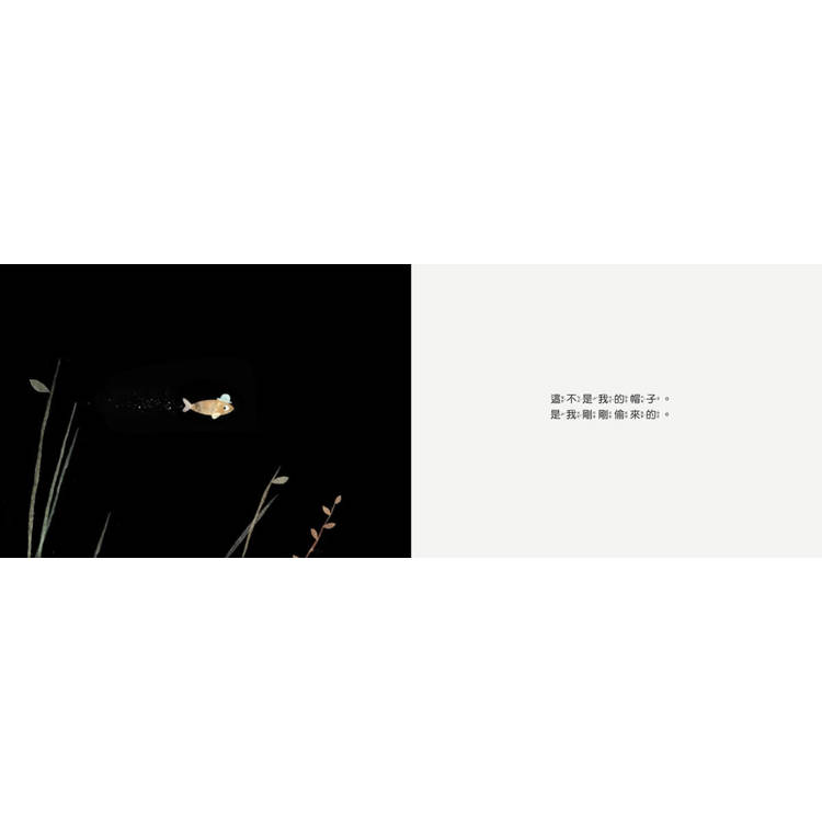 一隻小魚偷了大魚的帽子。他心想──大魚在睡覺不會發現、