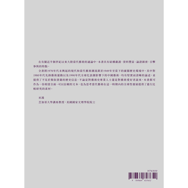 「在有關近半個世紀以來大陸當代藝術的通論中,本書具有結構嚴謹、資料豐富、論證縝密、目擊參與的特點。全書將1970年代末興起的現代和當代藝術潮流置於1949年至當下的廣闊歷史環境中。其中對1980年代先鋒藝術運動以及1990年代全球化浪潮影響下的中國藝術,均有堅實而清晰的論述,並提供了不見於類似書籍的歷史信息。不論是對藝術史專業人士還是對藝術愛好者說來,本書都可作為一份相當全面、可以信賴的文本,也為思考當代藝術在這一時期內的全球性發展提供了進行比較研究的素材。」