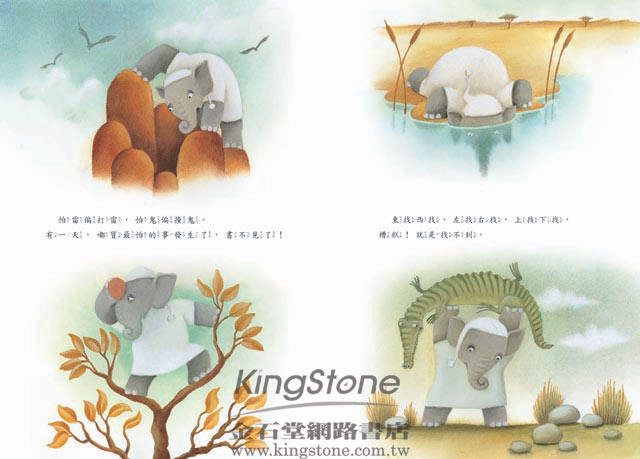 大象嘟寶睡不著,他數了羊,也數了雞,還數了兔…但是都沒有用。不知怎麼辦才好的他向巫師求助,結果巫師給他一本書。這本書還真的有用!只要和它一起睡覺,保證睡得香又甜。大象嘟寶把書當做寶貝,害怕別人會把它偷走,想盡辦法要把書藏起來不被人發現。但是有一天,他的惡夢終於成真—書竟然不見了!到底是誰把書偷走呢?大象嘟寶能夠發現書的真正妙用嗎?