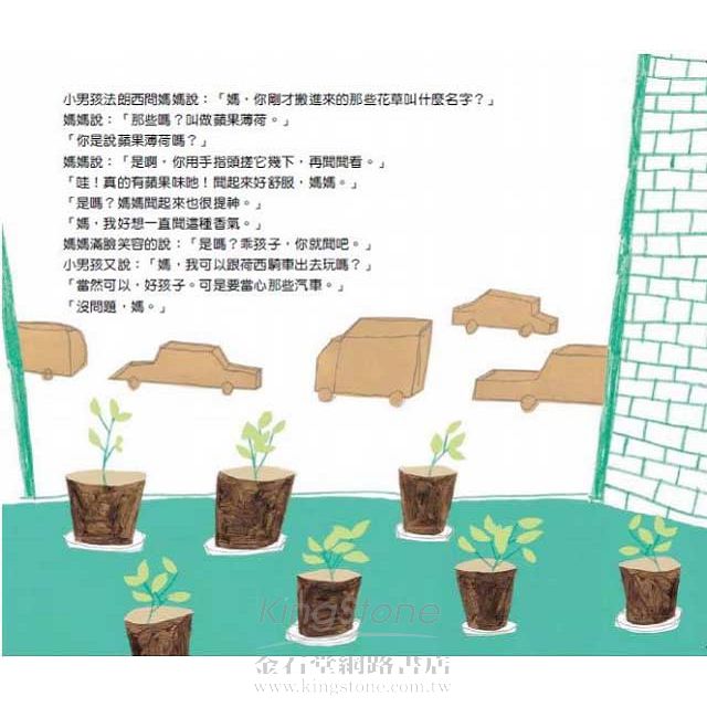 故事由媽媽的幾盆「蘋果薄荷」說起,故事的結局又回到那幾盆「蘋果薄荷」得到什麼樣的安置,成為一個令小讀者滿意的收尾,運用了「回應」的技巧。故事快結束的時候,法朗沙說他忽然想到一個好主意。荷西問他是什麼好主意,法朗沙卻回答說:「路上我會告訴你。」而不當場回答,運用了「懸疑」的技巧。