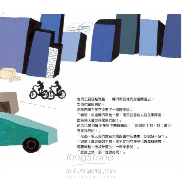 作者生動的描寫平日大馬路的噪音喧天,又生動的描寫「無車日」大馬路的平和寧靜,運用了「對比」的技巧。作者營造種種氣氛,使小讀者對「無車日」充滿期待,深刻的受吸引想知道「無車日」究竟是什麼模樣,運用了「製造高潮」的技巧。