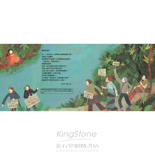 經濟發展和環境保育孰輕孰重?透過澳洲的妮可與英國的傑克的通信,讓讀者看見了澳洲昆士蘭地區,在二十幾年前保護熱帶雨林的一個個案。妮可的信透露出經濟依賴者對環境保育的不了解與不信任感。