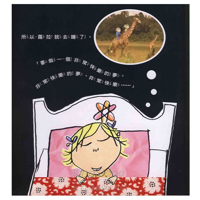 「查理和蘿拉」這兩位超人氣的小主角,逗趣的互動、童稚的對話,更讓以「天線寶寶」風靡全球的英國BBC電視台選中,製作成一系列的動畫,成為家喻戶曉的角色人物,週邊商品隨處可見,也讓蘿倫.柴爾德成為各大出版社競邀合作的對象。她設計感十足的拼貼風格、獨特的字型設計與排列方式讓人印象深刻;以「查理和蘿拉」為例,當對話中的字體被放大或變粗體時,讀者彷彿真切感受到蘿拉又在扯著喉嚨了;當文字像曲線般漫延時,多半是蘿拉在碎碎唸著自己的主張,讓閱讀更為樂趣十足!