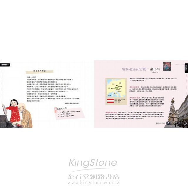 康斯坦絲是一個從小就沒有媽媽的小女孩,請看她怎麼寫信與在天堂的媽媽分享生活中的一切?而她又是如何讓成天喝酒、自甘墮落的爸爸從頹廢中振作起來?音樂天才莫札特的故鄉——奧地利,每年會舉辦什麼樣的音樂盛事,竟可以吸引成千上萬來自世界各地的民眾造訪?另外,此繪本藉由故事情節的鋪陳引導,讓孩子了解什麼是銀行?什麼是存摺?要怎麼去開戶?錢存在銀行跟存在撲滿裡到底有何不同?可做為培養孩子養成儲蓄習慣的第一步。