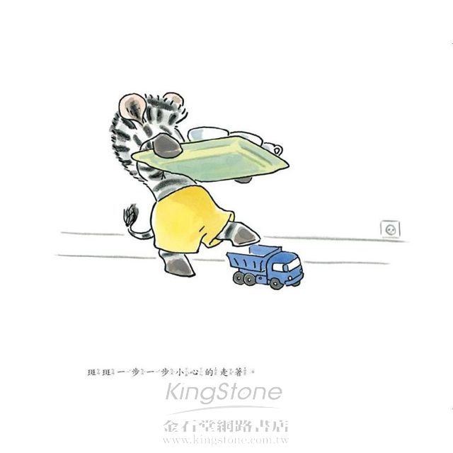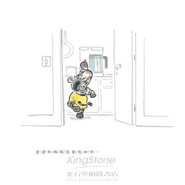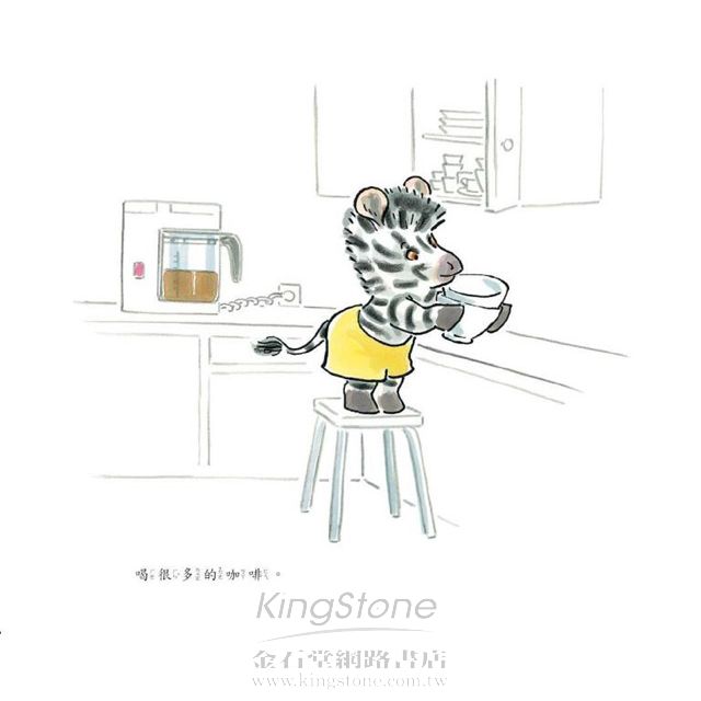 早上,斑斑端著暖暖的咖啡和豐盛的早餐走向爸爸媽媽的房間,希望能叫他們起床。斑斑小心的一步一步走著……唉呀!全灑出來了!一切又要重頭來過,可是咖啡壺裡剩下的咖啡,就連家裡最小的杯子也裝不滿,斑斑該怎麼辦呢?