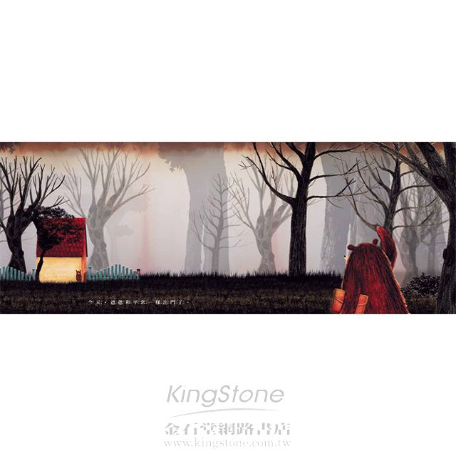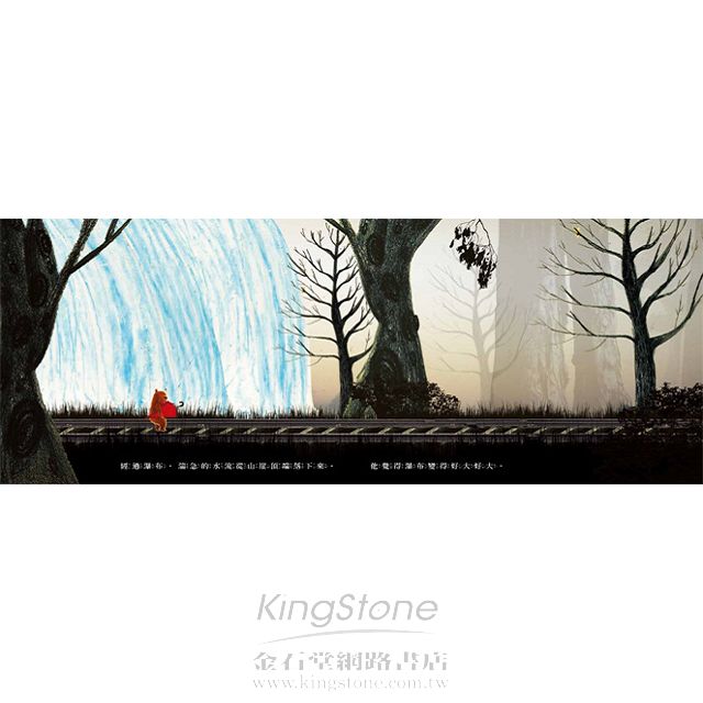 糟糕!熊爸爸出門忘記帶紅雨傘了!小熊匆忙的跑出去,想送傘給爸爸。一路上,小熊經過好長好長的吊橋、好大好大的瀑布,還有黑漆漆的山洞,不過,他還是緊緊抓著爸爸的傘,勇敢的往前走…。