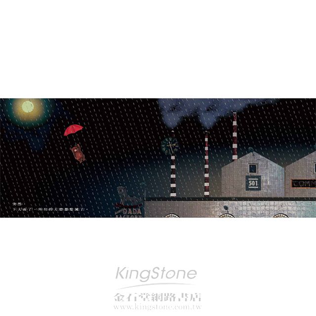本書是首屆動畫創作得獎作品,結合圖畫書和動畫故事DVD,讓孩子體驗不同的閱讀樂趣,在靜態與動態的畫面中,滿足對故事的無限想像。作者以孩子為爸爸送傘的溫馨題材,透過沉穩色調的圖像,緊湊流暢的運鏡節奏,搭配豐富生動的配樂,將孩子對父親的真摯情感,以及溫暖的親子關係,導演得有聲有色。故事中的景物以平溪、放天燈為背景,在作者自然巧妙的鋪陳下,不僅化為整篇故事的佈局與高潮點,讓孩子印象深刻,無形中,也帶孩子親近、認識這塊土地的美好。