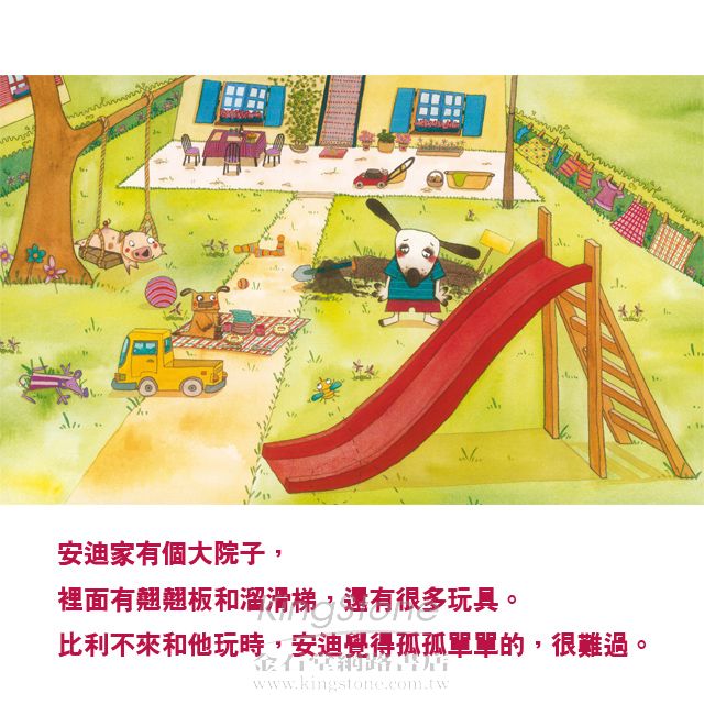 安迪個性溫和,家裡只有他一個小孩,雖然他有很多玩具,卻沒有玩伴。因為擔心失去朋友,即使隔壁鄰居比利總是指使他,甚至把他的東西占為己有,他就是無法拒絕比利的不當要求。