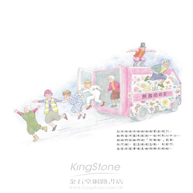 這是一本很能激勵人心的圖畫書,看到故事中的奶奶們各個身手矯健、勇氣十足,絲毫不被年齡所限制,莞爾之際不知不覺挺起腰桿,向老奶奶們看齊。