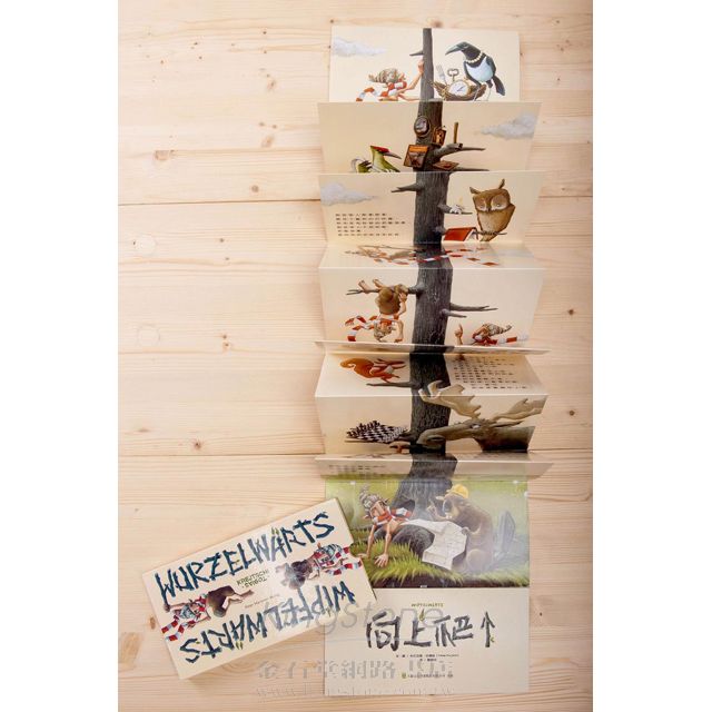 本書原文為德文。描述的是一個住在同一棵大樹上的兩個小矮人想要體驗不同生活的故事。作者以摺頁方式來呈現故事,讓孩子們盡情瀏覽兩個小矮人與樹上的各種動物們互動所發生的趣事,大大提升了閱讀趣味,也讓孩子們享受了前所未有的閱讀體驗。