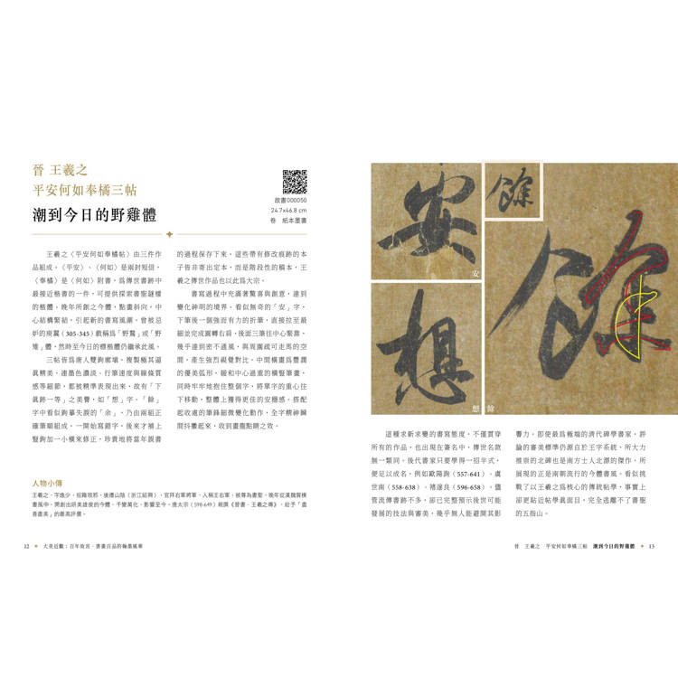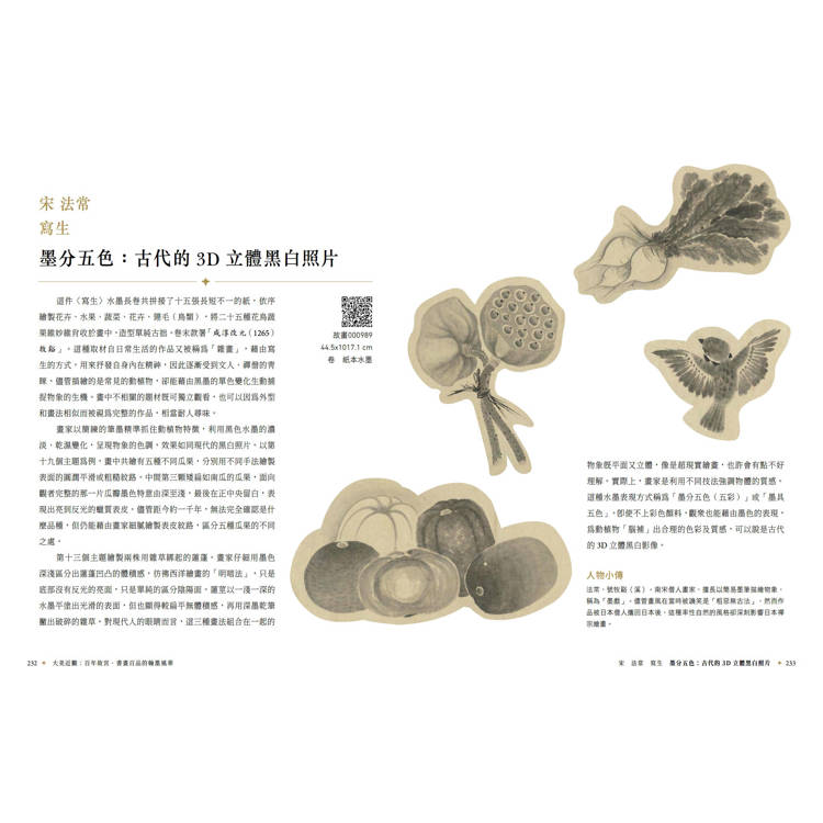 一件作品為何讓人感到精采?為何感動?為何偉大?必定有其原因,不會平白無故地達到上述的審美品質,也絕非單靠外在條件就能脫穎而出。許多與藝術品質無關的外在條件與特徵,往往都能透過模仿輕易完成,唯有筆墨才能與創作者緊密結合,展現出獨一無二的特質。正値百年院慶之際,本書特別精選出書法、山水、人物、花鳥共一百件共襄盛舉,其中包含前人的成果,也有當前的考量。書中將透過實際的觀看引導,向讀者介紹作品中最精采動人的部分,試圖走出屬於國立故宮博物院的書畫研究新方向。
