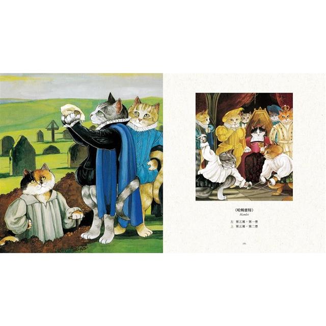 貓畫大師蘇珊‧赫伯特對貓咪的神態觀察入微,不論是中世紀或文藝復興時期巨匠的傑作、十九世紀印象派經典名作、莎士比亞名劇或好萊塢史詩大片,到她手裡主角都成了一隻貓。在這些眾人一眼就能認出的經典場景中,時不時還會露出粉紅肉墊或是毛茸茸尾巴,於是人的百轉姿態與貓的靈巧可愛恰如其分地成為一幅幅全新創作。