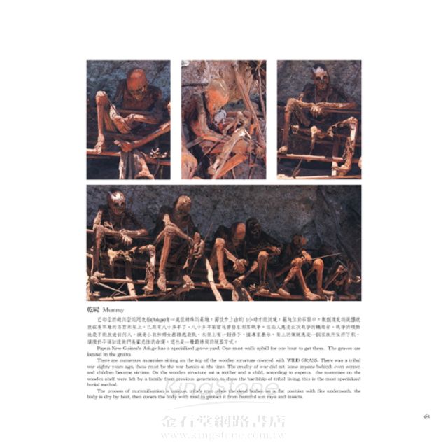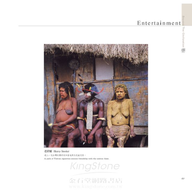 是什麼樣的機緣和毅力讓這名家庭主婦在10年內4度造訪新幾內亞東西兩隅──巴布亞新幾內亞和伊利安查亞,以數萬張的底片為日漸式微的部落文化做完整的報導與保存。背負沉重的攝影器材,吳美玉紀錄著陰經套著瓠瓜筒的男人、砍斷手指的女人、燻乾的屍體,以及哈根山、果洛卡唱唱嘉年華彩繪的歌舞秀、彩繪臉譜等奇風異俗,創作出現實的視覺景象與意境。