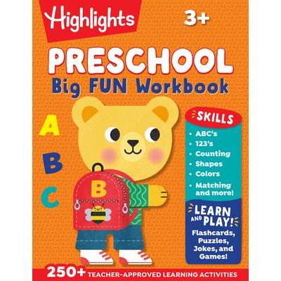 Over 1.7 million Highlights Big Fun Workbooks sold! Jumpstart learning with this award-winning preschool workbook from the kid experts at Highlights. Developed with teachers and aligned with curriculum standards, this pre-k workbook will get the littlest learners excited to start school! Jam-packed with 256 pages of puzzle-based, preschool activities -- including ever-popular Hidden Pictures, mazes, matching games, dot-to-dots and scavenger hunts -- there's something for every learning style. Expertly crafted, age-appropriate activities mix and match skills and puzzle types to create a fresh approach to school readiness, helping kids build skills in: - Language Arts: uppercase and lowercase letters, sight words, handwriting, rhyming
