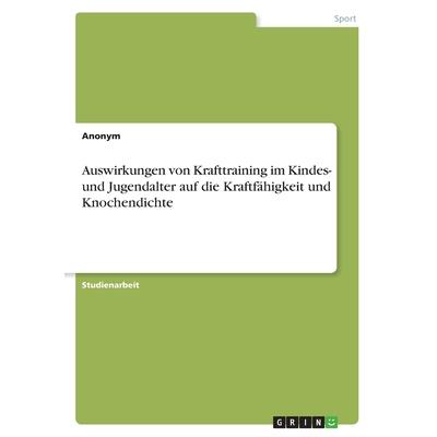 Studienarbeit aus dem Jahr 2019 im Fachbereich Gesundheit - Sport - Sportmedizin, Therapie, Pr瓣vention, Ern瓣hrung, Note: 1,0, Eberhard-Karls-Universit瓣t T羹bingen, Sprache: Deutsch, Abstract: W瓣hrend Krafttraining im Kindesalter fr羹her von Experten und Fachgesellschaften strikt abgelehnt wurde, empfiehlt heutzutage die Weltgesundheitsorganisation Krafttraining als essenzielle Ma?nahme zur k繹rperlichen Aktivit瓣t. Experten vermuten, dass nicht Krafttraining per se, sondern externe Faktoren wie ungenaue Bewegungsausf羹hrung oder ung羹nstige Trainingslasten zu Verletzungen f羹hrten. Diese Vermutung begr羹nden sie auf der Beobachtung, dass fr羹here Fallstudien mehr Bezug auf trainingsbedingte Verletzungen dieser externen Faktoren nehmen. Durch diese Fallstudien bedingt, lehnten viele Experten, Eltern, sowie ?rzte zu fr羹hes Krafttraining ab und diese Meinung ist bis heute in vielen K繹pfen verankert geblieben. Diese Arbeit soll dieses Problem kritisch betrachten, unter der Fragestellung: Welche positiven Auswirkungen hat Krafttraining im Kindes- und Jugendalter auf die Entwicklung der Kraft und der Knochendichte? In dieser Arbeit soll speziell auf zwei Bereiche n瓣her eingegangen werden. Zum einen auf die positiven Auswirkungen von Krafttraining auf die Entwicklung der sportlichen Leistung, hier in Bezug auf die Entwicklung der Kraft, und zum anderen auf die F繹rderung der Gesundheit, hier am Beispiel der Knochendichte. Um Auswirkungen von Krafttraining im Kindesalter aufzuzeigen wird in dieser Seminararbeit zuerst allgemein die Entwicklung der Muskelkraft, unabh瓣ngig von Krafttraining, dargestellt und anschlie?end mithilfe von Studien die Auswirkungen von Krafttraining auf den muskul瓣ren Bewegungsapparat verglichen. Abschlie?end wird sich diese Seminararbeit mit Auswirkungen von Krafttraining auf die Knochendichte von Heranwachsenden befassen. Die Knochendichte ist ein wichtiger Indikator f羹r die Gesundheit und Fitness von Jugendlichen