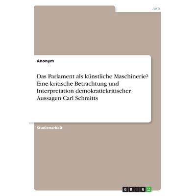 Studienarbeit aus dem Jahr 2019 im Fachbereich Jura - ?ffentliches Recht / Staatsrecht / Grundrechte, Note: 1,0, Universit瓣t Hildesheim (Stiftung), Sprache: Deutsch, Abstract: Carl Schmitt ist eine h繹chst umstrittene Person. Er erkl瓣rt das Parlament zu einer k羹nstlichen Maschinerie. Doch ist es das wirklich? Ein differenzierter Einblick in seine Aussagen, die sich bis heute in demokratischen Prozessen in der Europ瓣ischen Union wiederfinden lassen. Kann die parlamentarische Ebene wirklich umgegangen werden? In dieser Arbeit werden Carl Schmitts Aussagen kritisch unter Ber羹cksichtigung des historischen Kontextes analysiert und eingeordnet. Die Positionen des Staatsrechtlers Carl Schmitt sind auch heute noch umstritten. Sie wirken gef瓣hrlich und sind nicht zuletzt f羹r antiliberale Denker ein Bezugspunkt. Schmitts Lehre hatte u. a. Einfluss auf die Entstehungsprozesse des Grundgesetzes z. B. in Bezug auf die Modifikationen des konstruktiven Misstrauensvotums und die Ewigkeitsklausel, die mit seiner Kritik an der damaligen Verfassung in Verbindung stehen k繹nnte.